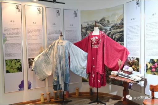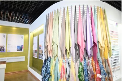 穿過展廳入口的七彩走廊,一個充滿童話色彩的世界展現(xiàn)在記者眼前。五彩斑斕的色素原料及成品,五顏六色的糖果、糕點和飲料,純植物色素印染、頗有些“莫蘭迪色”風(fēng)味的衣服與絲巾……